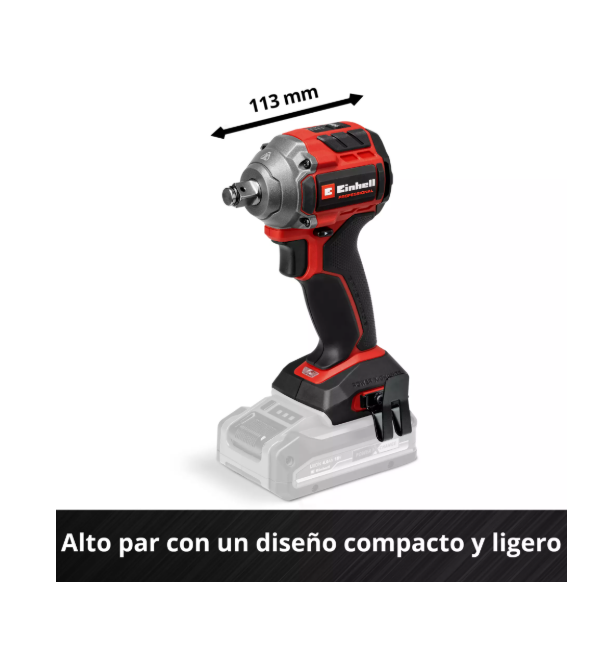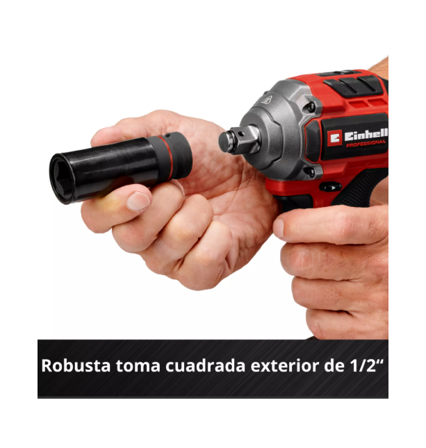 La llave de impacto inalámbrica Einhell Professional TP-CW 18/260-C Li BL-Solo es una herramienta de alto rendimiento para tareas exigentes de atornillado y cambios de neumáticos. Forma parte de la familia Power X-Change, por lo que es compatible con cualquier batería o cargador del sistema. Equipada con un motor sin carbones Einhell, ofrece más potencia y mayor autonomía que los motores con escobillas. Al registrarla, el motor cuenta con garantía de 10 años. Su diseño compacto y liviano (un 30 % más pequeño que modelos similares) la hace especialmente práctica y versátil. Ofrece un par máximo de 260 Nm (y 500 Nm de par de aflojado) con ajuste en tres niveles más función auto-stop. Esta función detiene la herramienta a aprox. 100 Nm para evitar el sobreajuste y permitir terminar con una llave dinamométrica. También se activa automáticamente al desenroscar, cuando ya no hay resistencia. Incluye adaptador para puntas hexagonales internas, ideal para tornillos largos de madera. Incorpora luz LED para mejor visibilidad y clip para cinturón que facilita el almacenamiento entre usos. Se incluye un juego de tuercas para cambio de neumáticos.